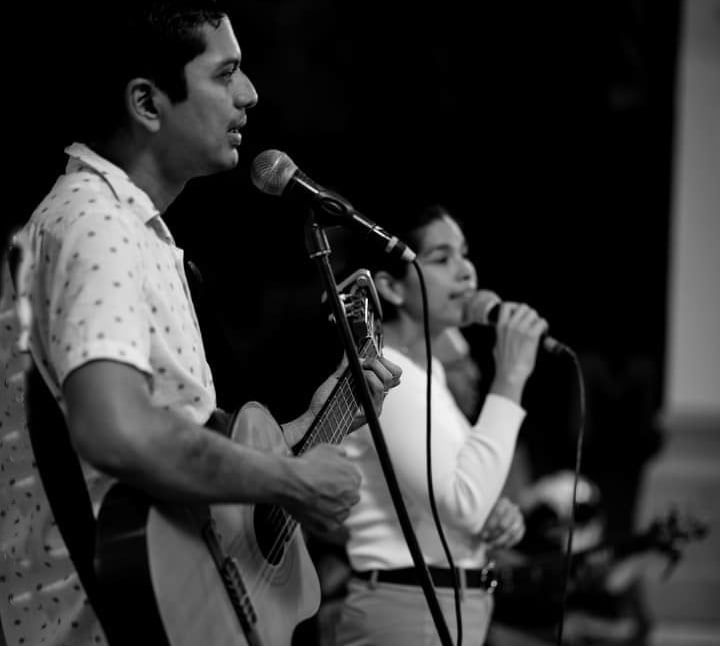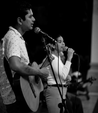 Fue en el coro de mi parroquia donde mi vida cambió para siempre. Allí, entre guitarras y ensayos, conocí a Ashly Zamora, quien hoy es mi esposa, mi compañera de fe, y la persona con quien sigo afinando esta hermosa melodía de vida. Nuestro amor nació entre voces y armonías, y desde entonces cantamos juntos al Señor.